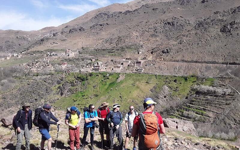 Upon arrival in Imlil, we meet our knowledgeable guides and friendly mules, ready to assist us in carrying our gear. With introductions made and equipment securely loaded, we begin our hike, heading eastward towards the remarkable Tizi n’Tamaterte.
